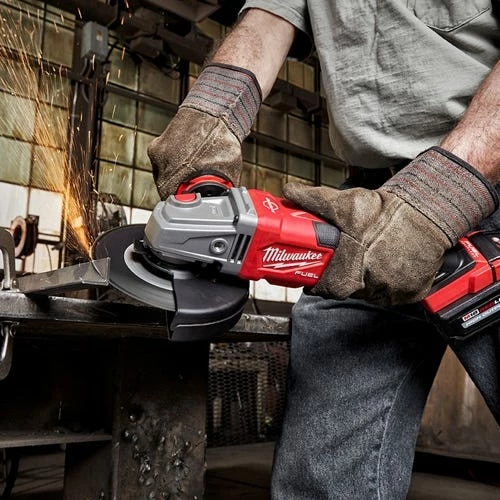 The M18 FUEL 4-1/2” – 6” Braking Grinder; Paddle Switch; No-Lock is Milwaukee’s highest performing small angle grinder. It generates the power of a 13A corded grinder; brakes all accessories under 3 seconds; and has 6” grinding capacity.